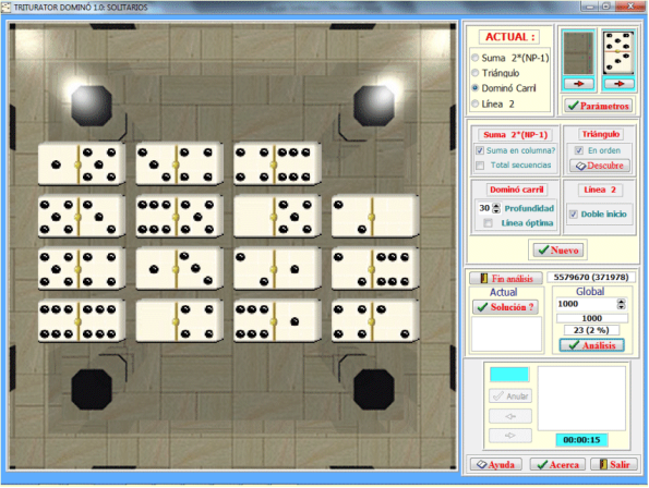 condiciones elegidas de tipo de dominó, filas y columnas deseadas, etc. en un