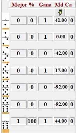 puestas, por ejemplo: (S:1)[5-4] (E:2)[4-2] (N:3)[2-0], (O:4) [5-5]:
