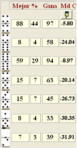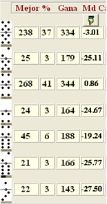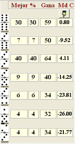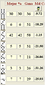 fallo. Ejemplo: [5-5] [5-2] [4-4] [4-0] [4-6] [6-2] [3-1] Salida [5-5]”