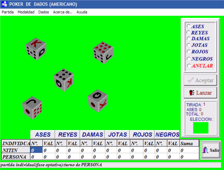 juego de dados, tanto en su versión americana como española (Ver “Juegos” para
