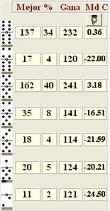 fallo. Ejemplo: [5-5] [5-2] [4-4] [4-0] [4-6] [6-2] [3-1] Salida [5-5]”